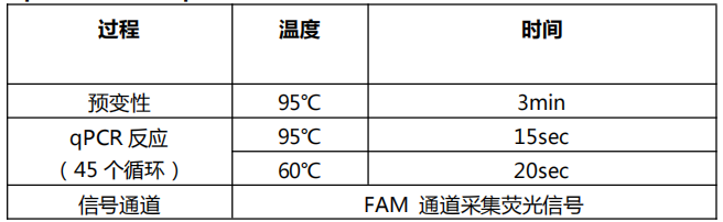 將 qPCR 管放置在 qPCR 擴(kuò)增儀器樣品槽相應(yīng)位置,進(jìn)行擴(kuò)增,擴(kuò)增程序如下